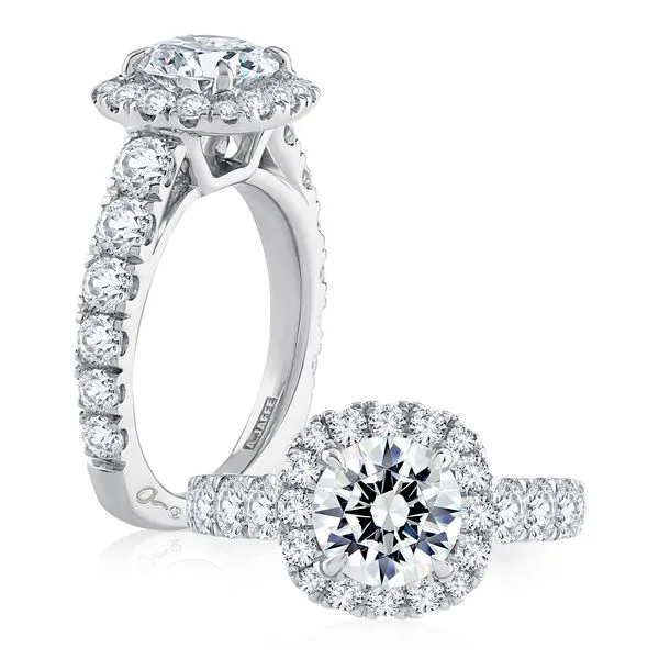 Cushion Shaped Diamond Halo Round Center Stone Diamond Engagement Ring Quest Fine Jewelers Fairfax, VA