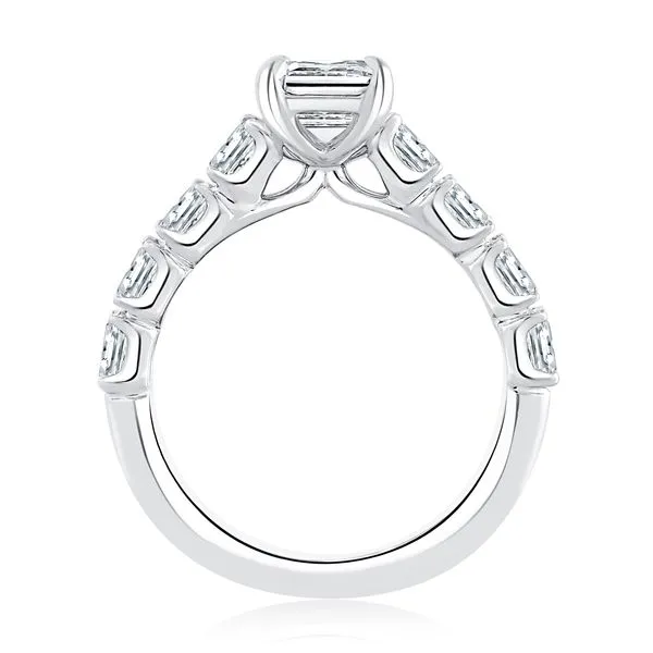 Emerald Cut Diamond Engagement Ring with East West Emerald Diamond Accents Band Image 2 Quest Fine Jewelers Fairfax, VA