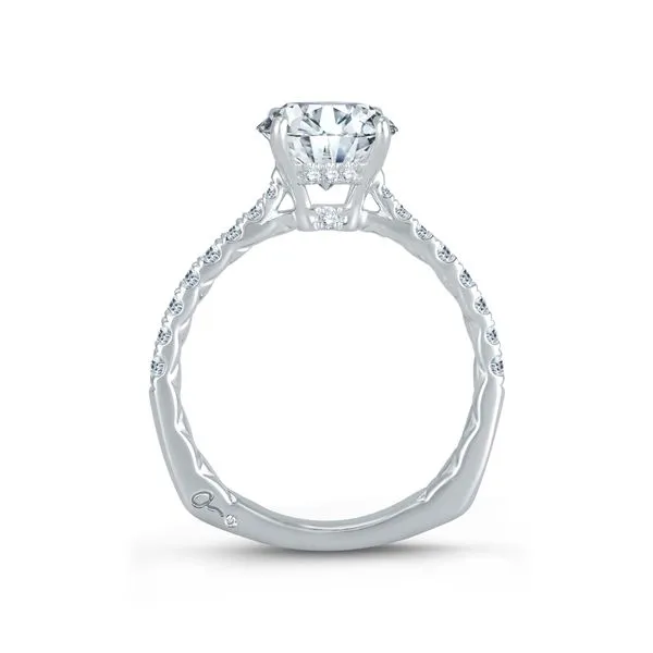French Pave Round Center Diamond Quilted Engagement Ring Image 3 Quest Fine Jewelers Fairfax, VA
