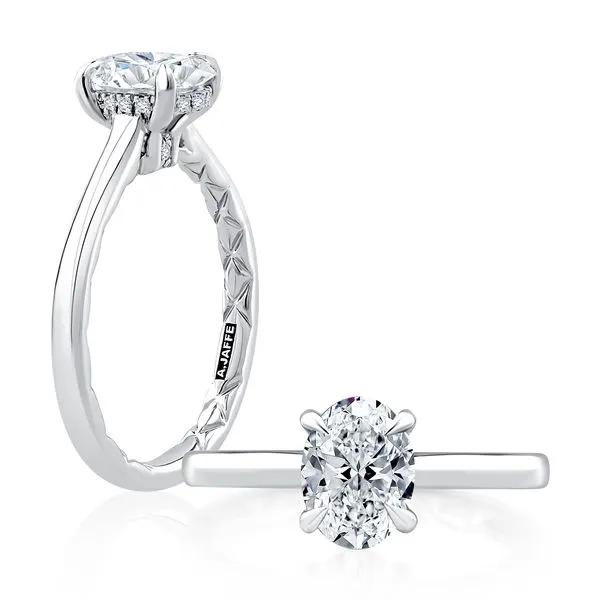 Hidden Halo Oval Cut Diamond Solitaire Engagement Ring with Quilted Interior Quest Fine Jewelers Fairfax, VA