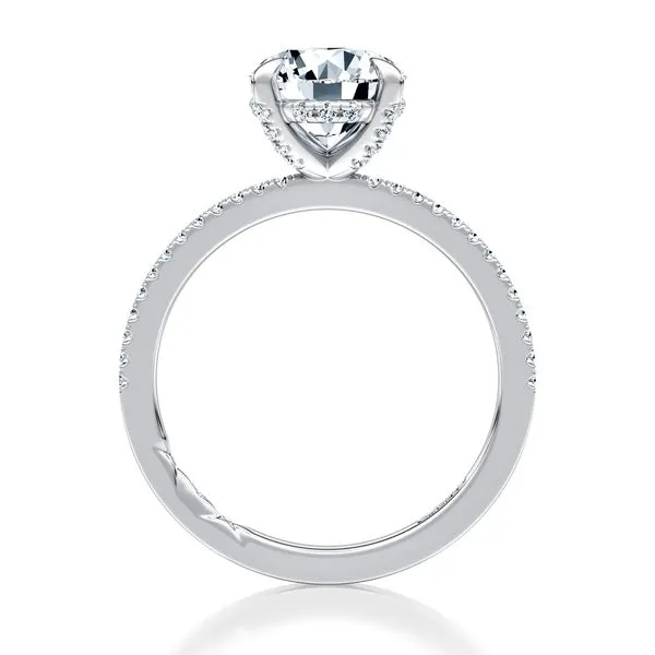 Hidden Halo Round Engagement Ring with Pave Band Image 3 Quest Fine Jewelers Fairfax, VA
