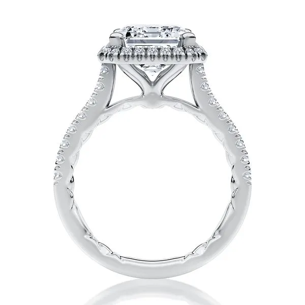 Modern Emerald Cut Diamond Engagment Ring with Diamond Pave Halo Quest Fine Jewelers Fairfax, VA