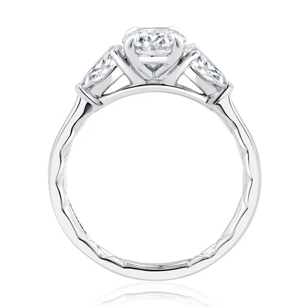 Modern Three Stone Round Center Diamond Engagement Ring with Pear Shaped Side Diamonds Image 3 Quest Fine Jewelers Fairfax, VA