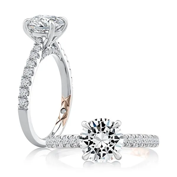 Round Center Diamond Engagement Ring with Peek-A-Boo Diamonds and Pave Band Image 2 Quest Fine Jewelers Fairfax, VA