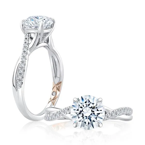 Round Cut Diamond Split Shank Crossover Engagement Ring Image 2 Quest Fine Jewelers Fairfax, VA