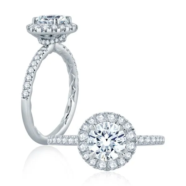 Round Halo Engagement Ring with Belted Gallery Detail Quest Fine Jewelers Fairfax, VA