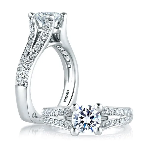Split Shank Diamond Engagement Ring with a Round Center Stone Image 2 Quest Fine Jewelers Fairfax, VA