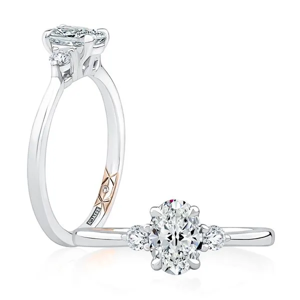 Three Stone Oval Cut Engagement Ring With Round Side Diamonds Image 3 Quest Fine Jewelers Fairfax, VA